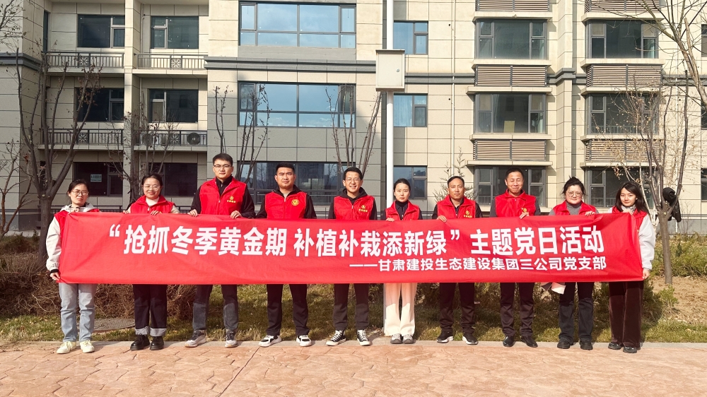 為進(jìn)一步踐行習(xí)近平生態(tài)文明思想,搶抓冬季補(bǔ)種黃金期。近日,生態(tài)三公司黨支部組織全體黨員、團(tuán)員青年在蘭州新區(qū)瑞嶺名郡項(xiàng)目開展“搶抓冬季黃金期 補(bǔ)植補(bǔ)栽添新綠”主題黨日活動(dòng),牢固樹立“增綠就是增優(yōu)勢,植樹就是植未來”生態(tài)理念。