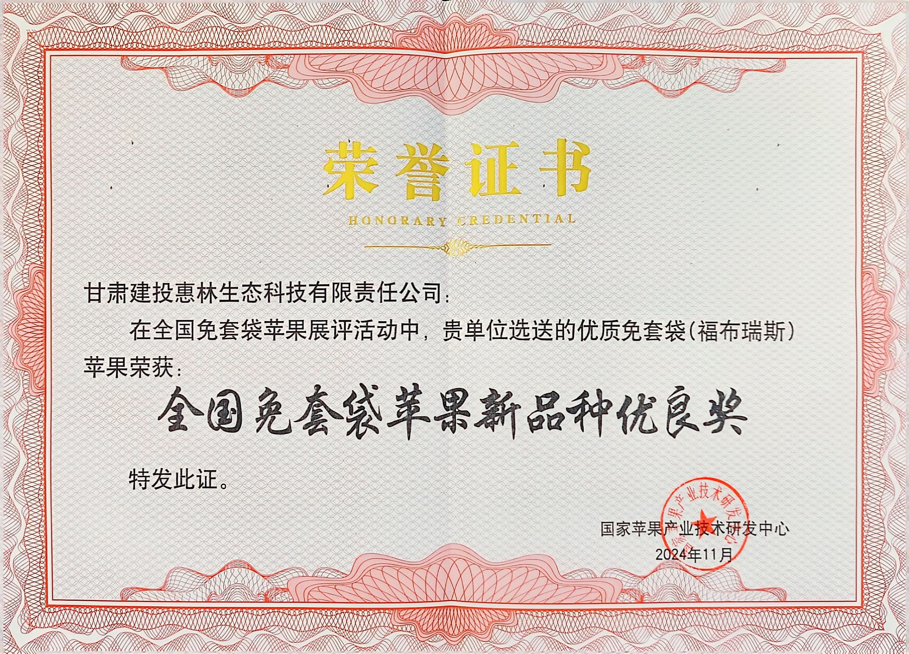 近日,全國蘋果免套袋輕簡化精準高效優(yōu)質(zhì)生產(chǎn)技術(shù)研討培訓會暨蘋果免套袋栽培技術(shù)協(xié)作組工作交流會在山東省煙臺市蓬萊區(qū)舉辦,由惠林公司選送的優(yōu)質(zhì)免套袋(福布瑞斯)蘋果榮獲“全國免套袋蘋果新品種優(yōu)良獎”。
